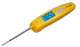 Using thermocouple technology, this new thermometer from Taylor Precision Products has superior advantages to other thermometers. This technology enables the thermometer to react faster to changes in temperature and will be more stable when reading the temperature. The results? Quicker response times and the ability for more accurate and stable temperature readings. Response times as quick as 4 seconds! (from room temperature in boiling water)The 9867FDA also has some incredible features that will benefit all – from the serious chef, to the experienced foodie, and the novice cook. First, the incredible range of -40ºF to 562ºF, with enhanced accuracy in the key cooking range of 0ºF to 230ºF. Second, the ultra thin, needle like tip is only 1.5mm or 1/16th of an inch, and leaves a much smaller hole in food so the flavorful juices do not escape while checking the temperatures.This Taylor thermometer can also be recalibrated. Every thermometer does not hold the accuracy forever, especially after accidentally dropping. A simple process with a few button presses will get the thermometer back to the superior accuracy that can be expected. Another unique feature is the hold button. When using the thermometer for food in the oven, simply push the thermometer into the food, press the hold button and the readout holds the temperature of the food. This helps by not having to keep the oven door open longer than needed while precious heat escapes.The foldable temperature stem tucks away for storage, and also acts as the thermometer shut off to save batteries. Just unfold the probe to operate.And, the durable plastic housing is made from anti-microbial plastic, which inhibits the growth of odor and stain causing bacteria on the housing.The 0.6” readout is large and easy to read, plus has a blue backlight for easy reading in dimmer lighting. Operates on 2 AAA batteries, included. Readmore .. .